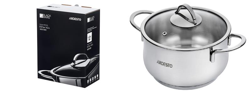 Каструля зі скляною кришкою Ardesto Black Mars, 4.3л, нержавіюча сталь (AR0743S)