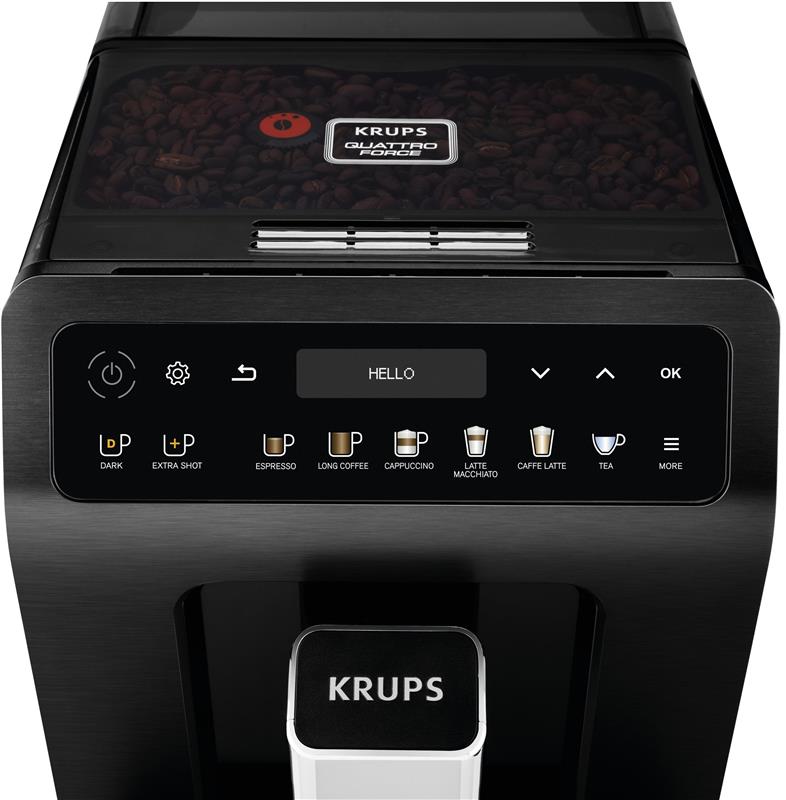 З автоматичною кавоваркою KRUPS Evidence Plus можна одним дотиком приготувати приголомшливу ароматну каву як справжній бариста. Завдяки 19 встановленим і регульованим програмам завжди можна отримати ідеальний напій із щойно змелених зерен кави, що відповідає смаку. Також можна обрати 6 рецептів і запустити натисканням лише однієї кнопки. Інноваційна та інтуїтивна широка кольорова сенсорна панель з OLED-дисплеєм допоможе швидко та легко керувати кавоваркою. Конічна кавомолка з нержавіючої сталі ефективно та на високій швидкості подрібнює зерна до потрібного помелу. Унікальна технологія KRUPS QUATTRO FORCE зробить звичну домашню каву витвором мистецтва.