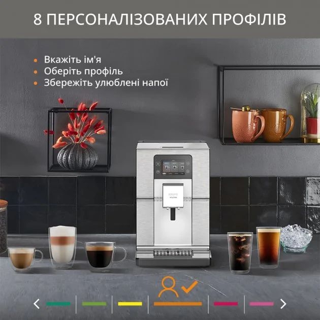 KRUPS Intuition Experience+ запам’ятає ваші уподобання. Ви можете створити до 8 профілів користувачів, і кожен із них можна вільно персоналізувати.