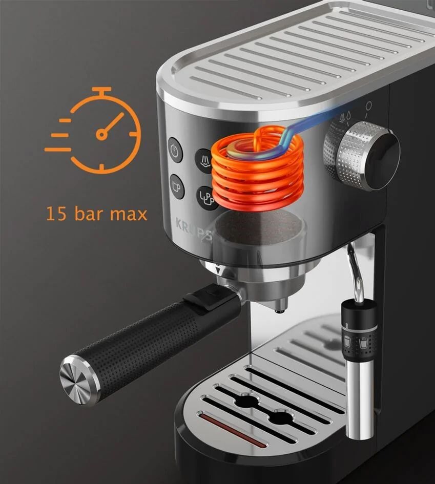 Ріжкова кавоварка KRUPS VIRTUOSO+ XP444G10 дасть змогу розкрити абсолютно новий світ смаків кави. KRUPS — помічник, який приготує для вас ідеальний еспресо.