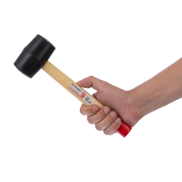 Киянка гумова, 350 г, 50 мм, чорна гума, дерев'яна ручка