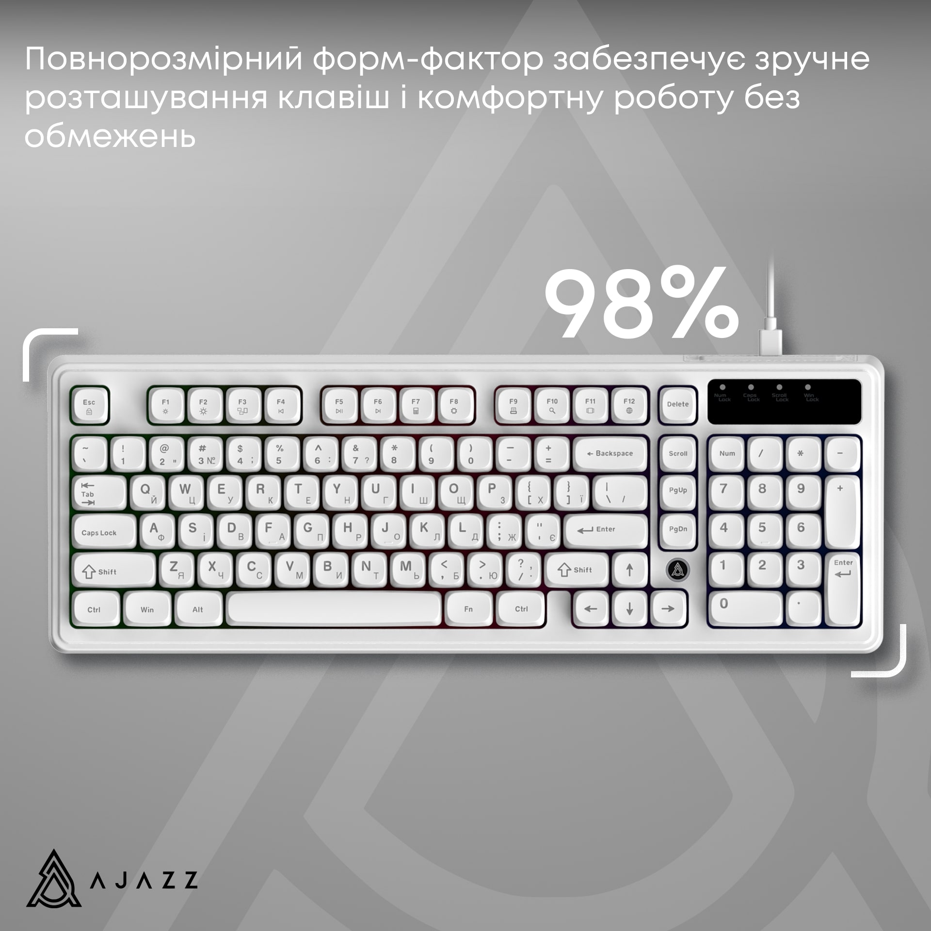 Клавіатура Ajazz AF98 Black USB-C White (AF98-W)