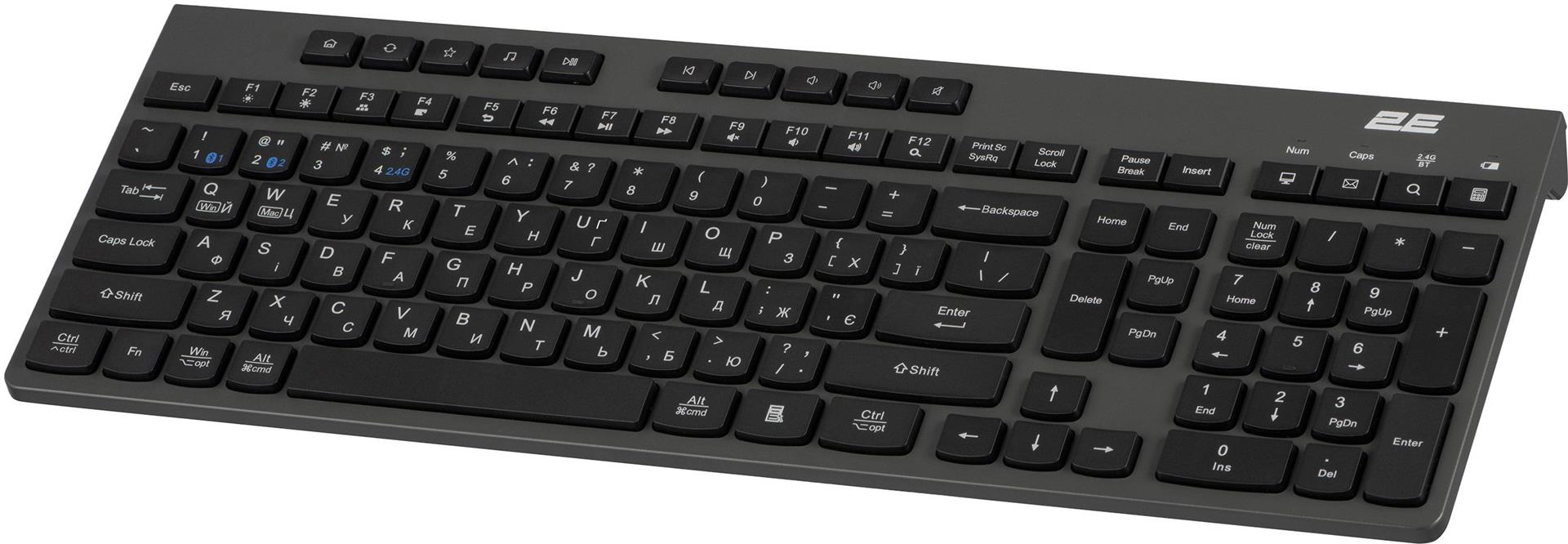 Клавіатура бездротова 2E KS280 WL/BT EN/UKR Grey/Black (2E-KS280WBGR_UA)