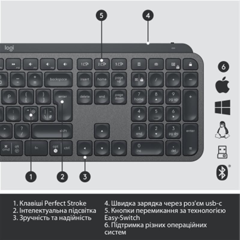 Клавіатура бездротова Logitech MX Keys Advanced for Business Wireless Illuminated UA Graphite (920-010251)