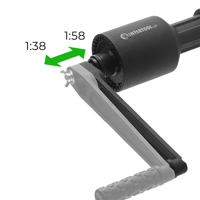 Наявність планетарного редуктора дозволяє значно збільшити крутний момент, докладаючи при цьому небагато зусиль. Двостороння конструкція ключа передбачає вибір оптимального передавального числа 1:58 або 1:38 з крутним моментом до 3800 Нм, й таким чином швидко послабити сильно прикипілі кріплення, не зриваючи при цьому головки болтів. Потім, до повного відкручування, зручніше продовжити працювати подовжувачем з ручкою та торцевою головкою.