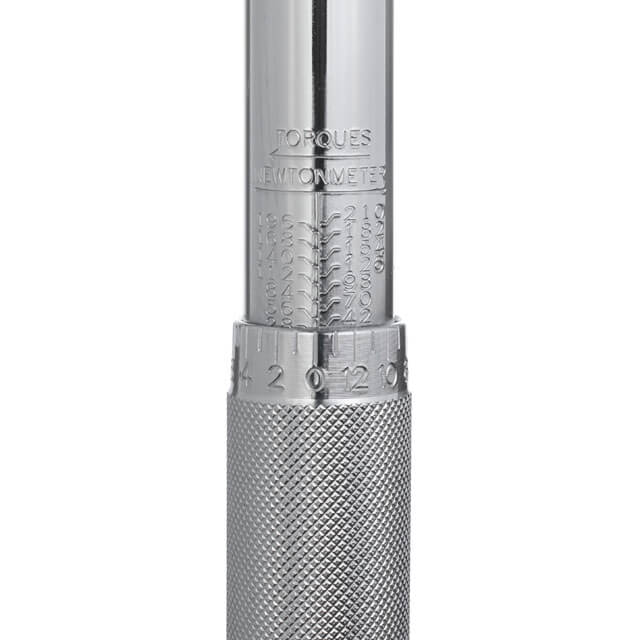 Зручне регулювання крутного моменту з подвійною шкалою (Фут/фунт та Н/м) легко зчитується. Стопорна гайка на торці ключа фіксує налаштування значення крутного моменту, поки ви працюєте.