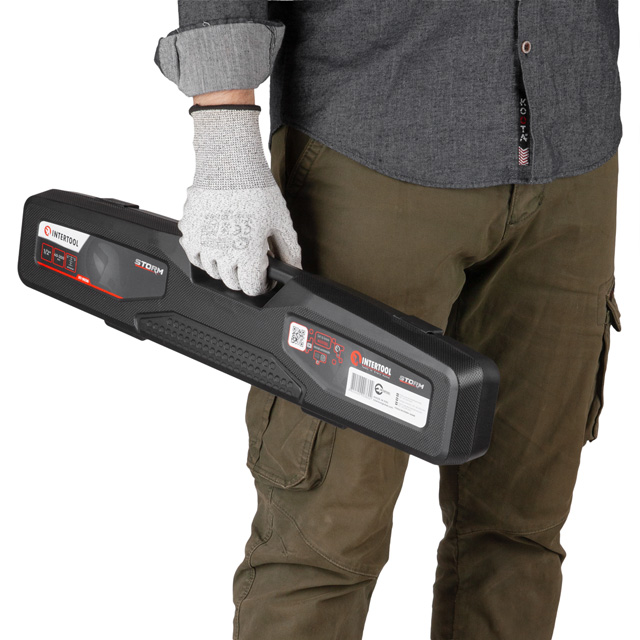 Ключ постачається в міцному пластиковому кейсі з ручкою та ребрами жорсткості для надійного захисту під час транспортування. Такий кейс захищає інструмент від пошкоджень та дозволяє завжди тримати його під рукою.