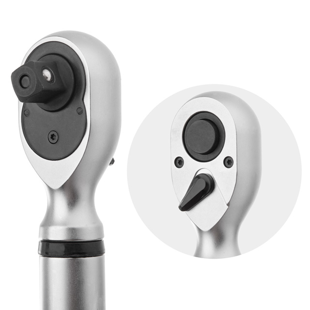 Механізм тріскачки ключа має плавний хід у 72 зубці, вирізняється високою точністю з мінімальним кроком у 5 градусів, що дозволяє працювати в умовах обмеженого простору. Кнопка фіксації головок для швидкої та зручної зміни насадок.
