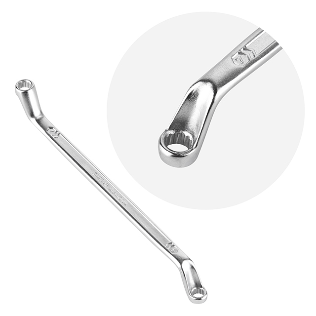 Дві накидні частини з дванадцятьма гранями збільшують площу прилягання поверхонь і знижують ризик зриву граней гайок та болтів. Робочі отвори розміщені під кутом до поверхонь, завдяки чому рука не зачіпляється та вільно обертає ключ.