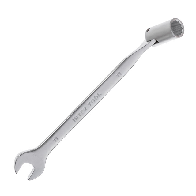 Ключ рожково-накидний, шарнірний, 11 мм, Cr-V, покриття: сатин-хром