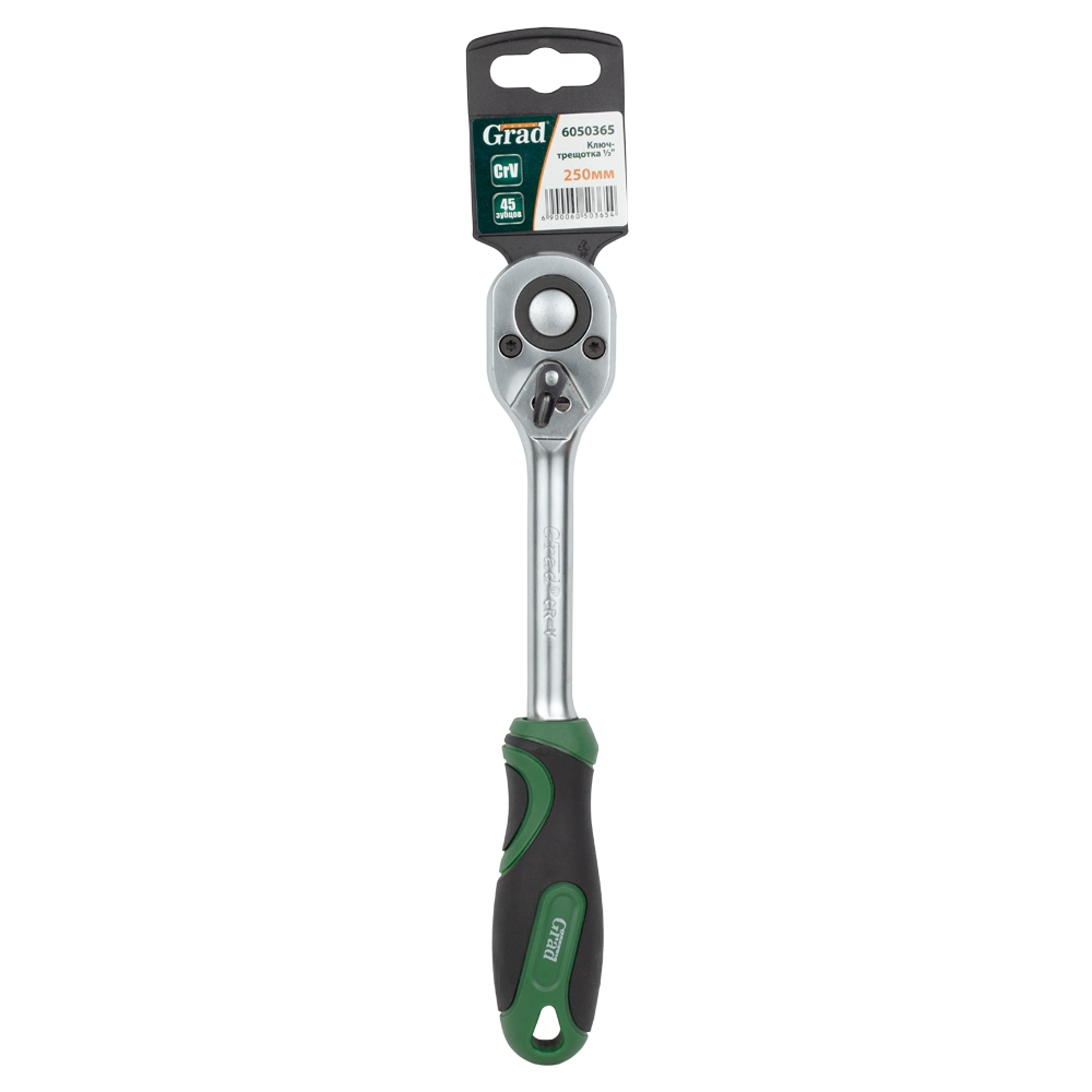 Ключ-тріскачка 1/2'' 250мм 45T GRAD (6050365) є інструментом для відкручування / закручування гайок, гвинтів, болтів та інших елементів кріплення, шляхом використання торцевих головок або біт з адаптерами.