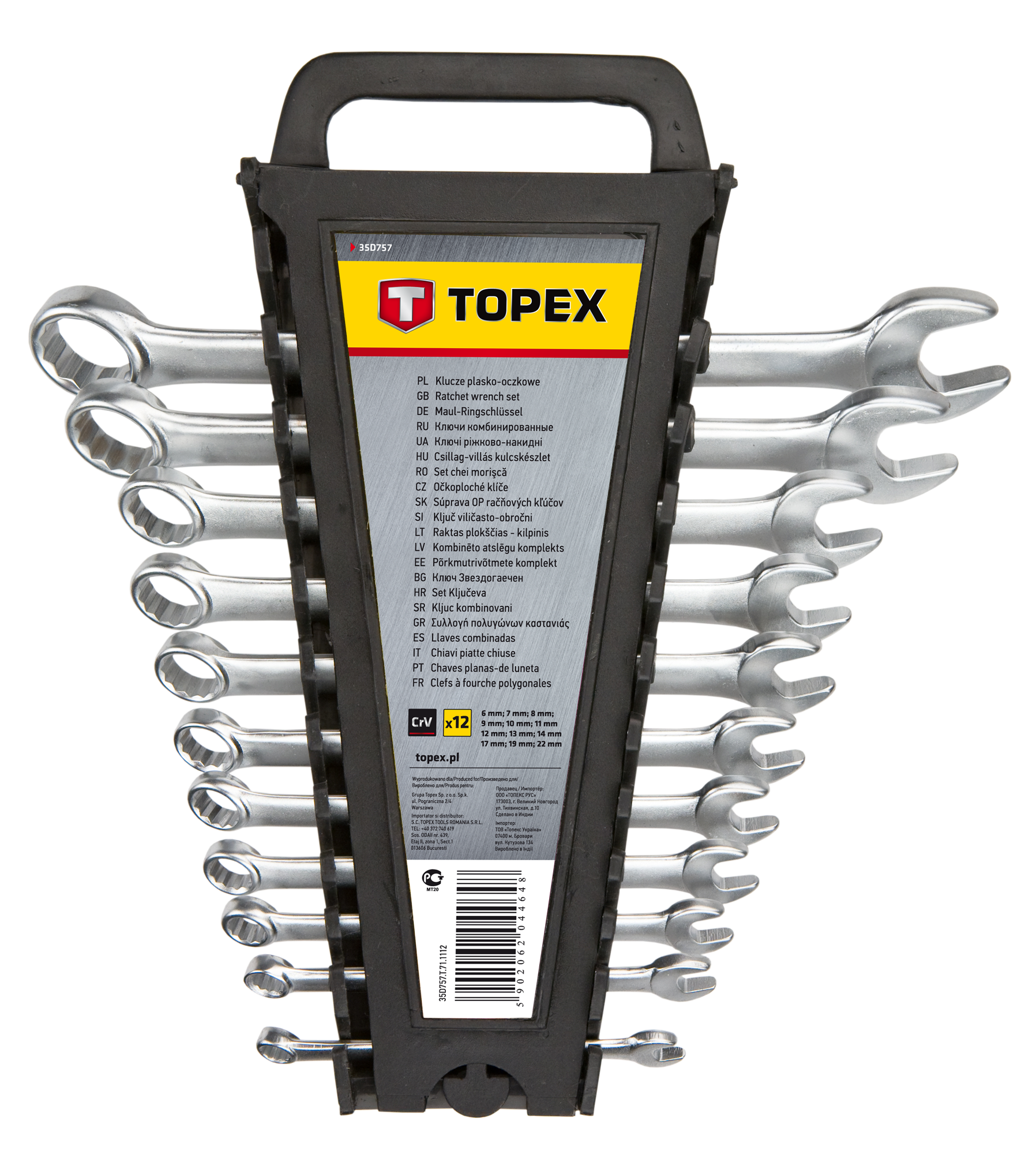 Ключі гайкові TOPEX, набір 12 од., комбіновані, 6-22 мм, CrV (35D757)