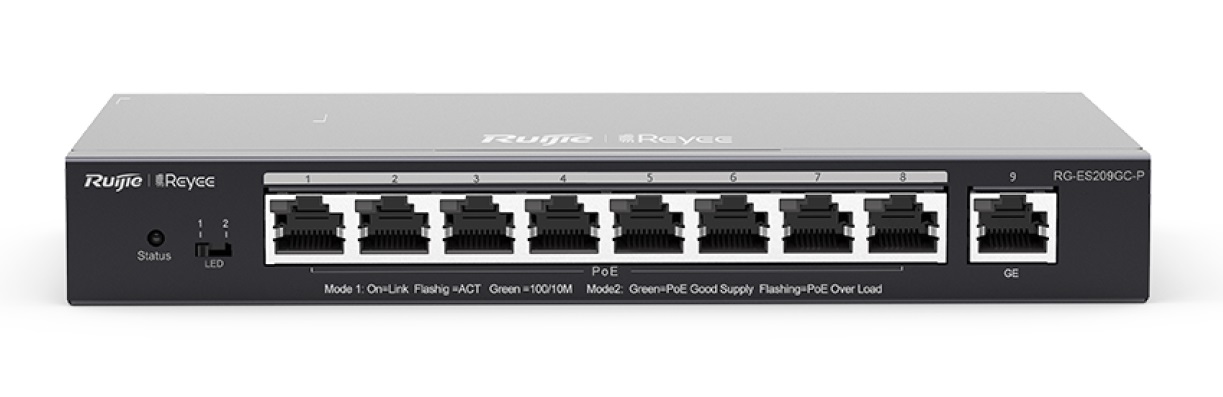Комутатор Ruijie Reyee RG-ES209GC-P (8xGE PoE+, 1xGE, max PoE 120W, робочий стіл, залізничний номер, Ruijie Cloud, Web Smart)