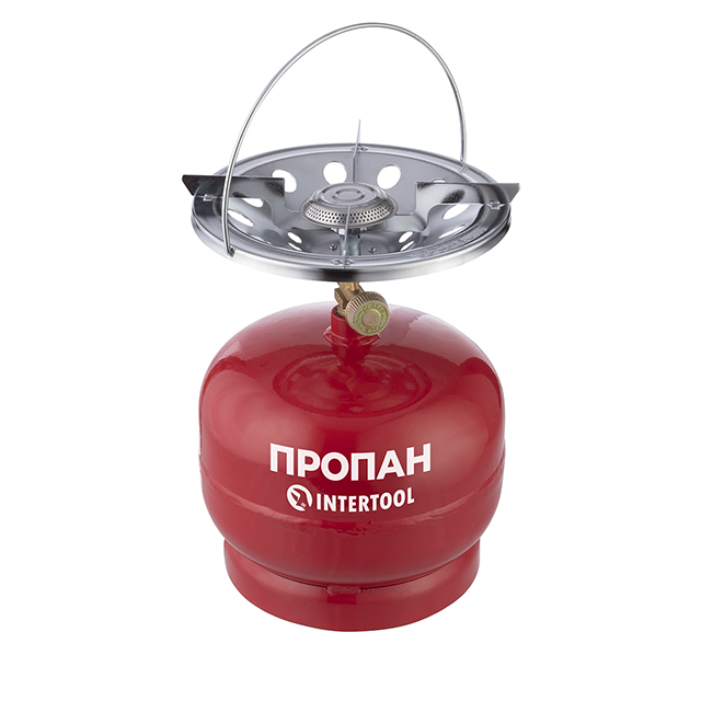 Балон має широке дно з підставкою, тому він стійко стоїть навіть на нерівній землі. Ручка, розміщена на конфорці для зручнішого транспортування всього комплекту.