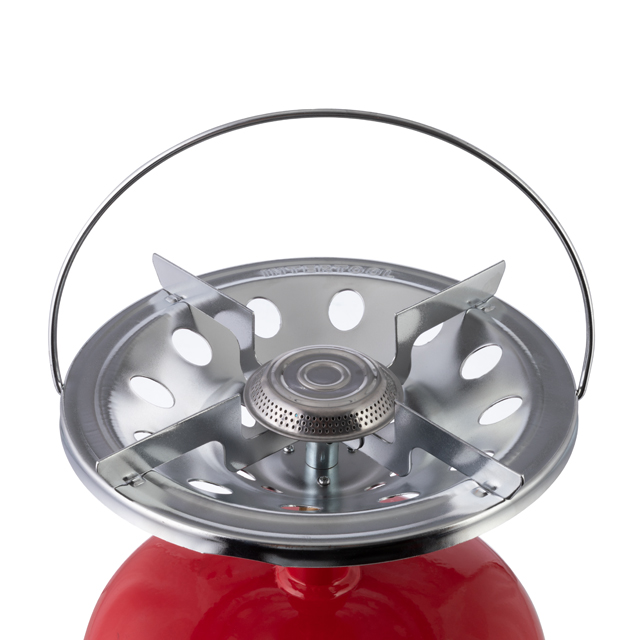 Цей балон з пальником відмінно підходить для приготування великої кількості їжі завдяки великій, стійкій конфорці, діаметром 220 мм. Широке полум'я регулюється, а сам процес приготування відбувається так само швидко, як і на звичайній газовій плиті. Каструлі та казанки надійно розміщуються на міцній металевій підставці й не перевертаються під час приготування їжі.