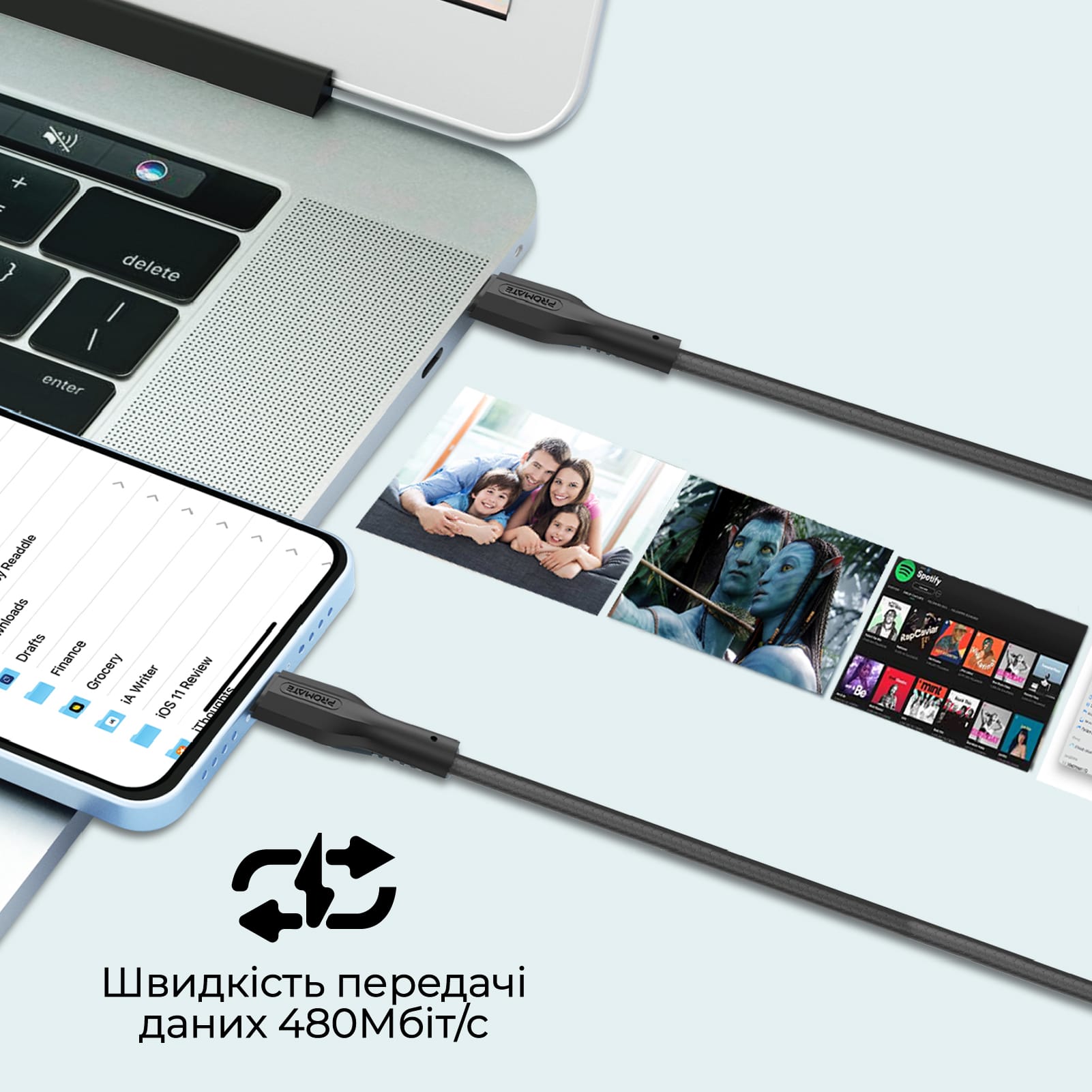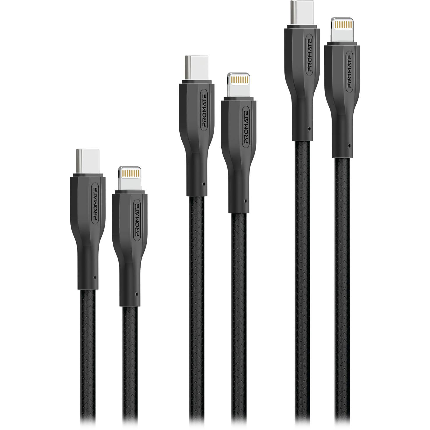 Комплект кабелів Promate USB Type-C - Lightning (M/M), 3A, 27W, 0.3 м, 1.2 м, 2 м Black (cablekit-ci)