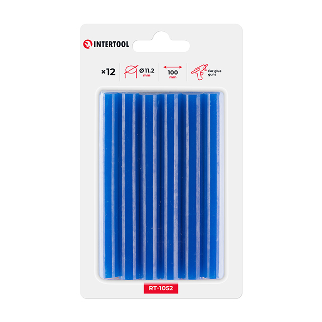 Клейові стрижні блакитного кольору універсальні, підходять для різних завдань. Діаметр стрижня 11,2 мм - один із найпоширеніших і найпопулярніших розмірів, підходить до будь-яких марок клейових пістолетів. Сам стрижень довжиною 100 мм, в упаковці - 12 штук.