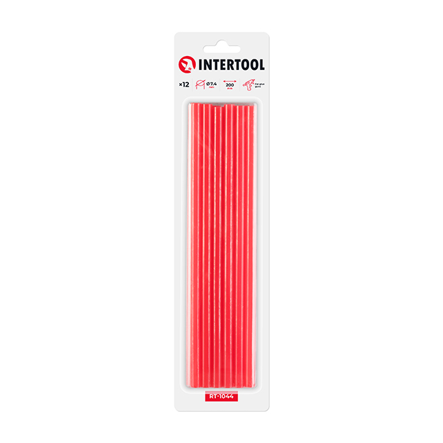 Комплект клейових стрижнів червоних, 7,4×200 мм, 12 шт.