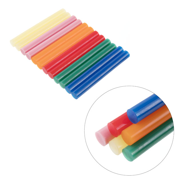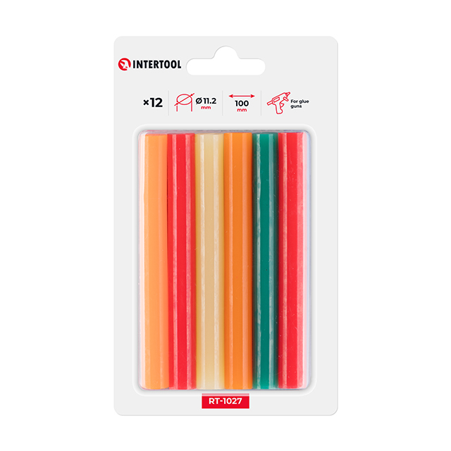 Клейові стрижні різних кольорів універсальні, підходять для різних завдань. Термоклей кольоровий: синій, зелений, оранжевий, червоний, жовтий, рожевий. В упаковці по 2 стержні кожного з кольорів. Діаметр стрижня 11,2 мм - один із найпоширеніших і найпопулярніших розмірів, підходить до будь-яких марок клейових пістолетів. Сам стрижень довжиною 100 мм, в упаковці - 12 штук.