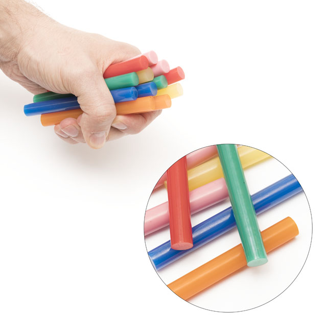 Стрижні виготовлені з високоякісної сировини марки Dupont. Такий термоклей складається з сополімеру ЕВА, він нетоксичний, не виділяє запаху та не містить розчинників. Високов'язкий клей дозволяє надійно скріплювати різні матеріали, твердішаючи в міру застигання через 30-40 секунд.