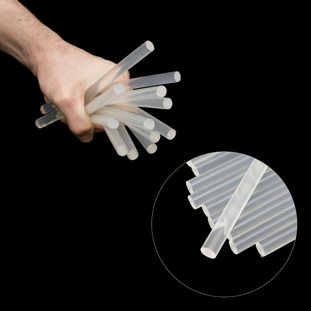 Стрижні виготовлені з високоякісної сировини марки Dupont. Такий термоклей складається з сополімеру ЕВА, він нетоксичний, не виділяє запаху та не містить розчинників. Напівпрозорий високов'язкий клей дозволяє надійно скріплювати різні матеріали, твердішаючи в міру застигання через 30-40 секунд.