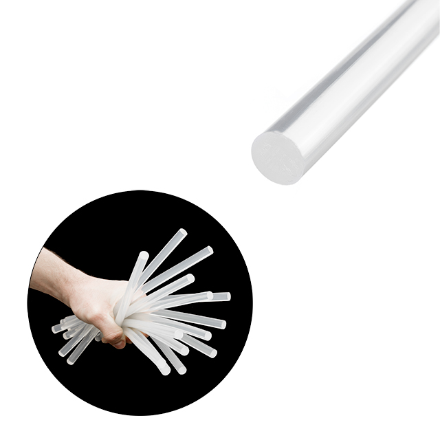 Стрижні виготовлені з високоякісної сировини марки Dupont. Такий термоклей складається з сополімеру ЕВА, він нетоксичний, не виділяє запаху та не містить розчинників. Напівпрозорий високов'язкий клей дозволяє надійно скріплювати різні матеріали, твердішаючи в міру застигання через 30-40 секунд.