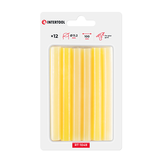 Клейові стрижні жовтого кольору універсальні, підходять для різних завдань. Діаметр стрижня 11,2 мм - один із найпоширеніших і найпопулярніших розмірів, підходить до будь-яких марок клейових пістолетів. Сам стрижень довжиною 100 мм, в упаковці - 12 штук.