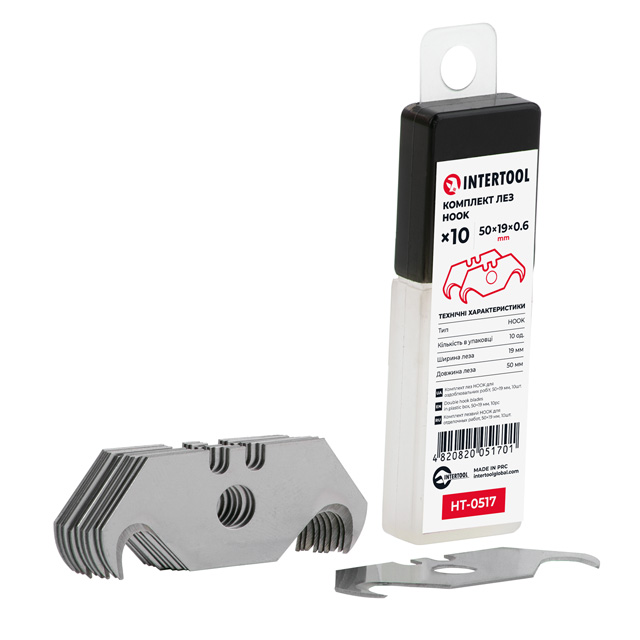 Для швидкої та комфортної роботи ніж має бути гострим та надійним. Щоб не гаяти часу на заточування, використовують ножі з різними змінними лезами. Ніж типу HOOK має дві робочі сторони із загнутим гострим краєм. Ефективний для різання різних килимових покриттів, листових синтетичних матеріалів, лінолеумів тощо.