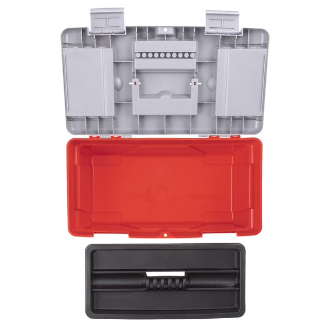 Виготовлені ящики з якісного пластику, стійкого до механічних пошкоджень. Конструкція добре справляється з навантаженнями, тримає форму та не деформується при транспортуванні важких інструментів.
