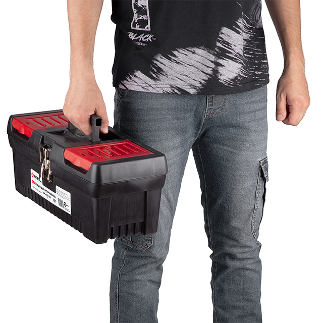 Виготовлені ящики з якісного пластику, стійкого до механічних пошкоджень. Конструкція з ребрами жорсткості чудово справляється з навантаженнями, тримає форму та не деформується під час транспортування важких інструментів.