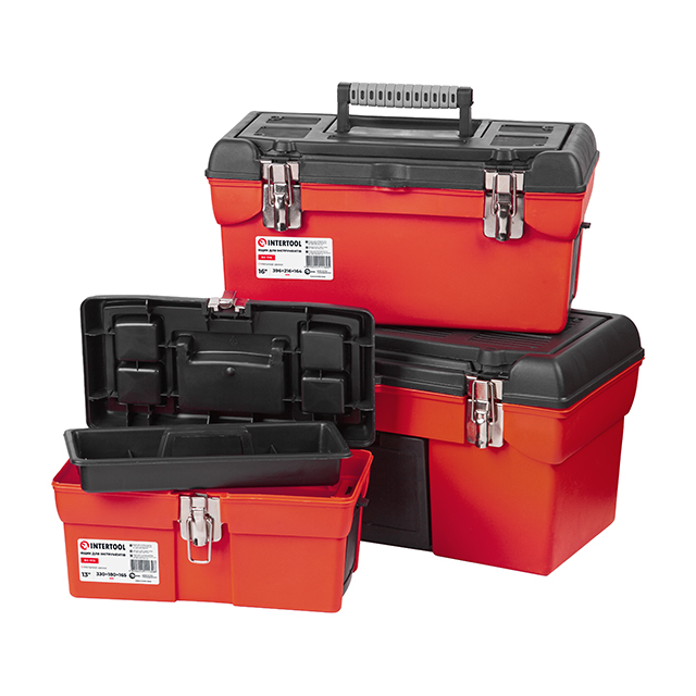 Ящики для інструментів INTERTOOL BX-0006 практичні та зручні у використанні. Набір з трьох ящиків задовольнить ваші потреби в організації та зберіганні інструменту, деталей та іншого обладнання для риболовлі, будинку, автомобіля. Продуманий дизайн і міцні матеріали виготовлення полегшують зберігання та транспортування інструментів, необхідних для роботи.