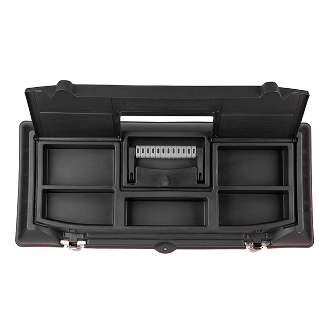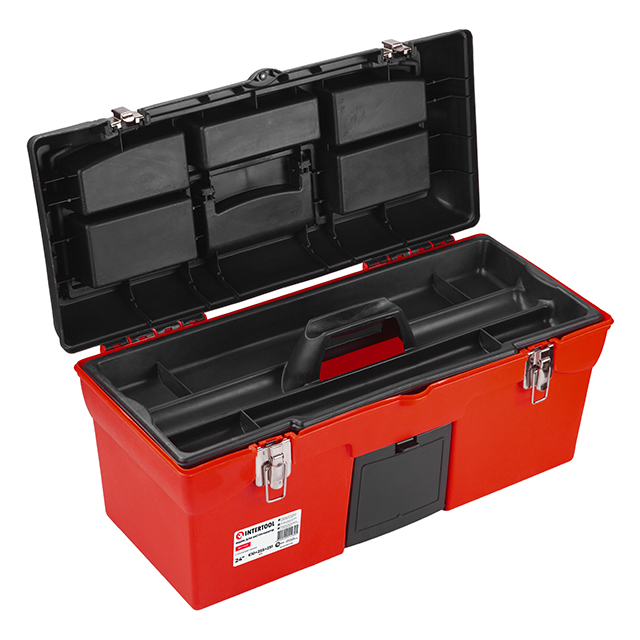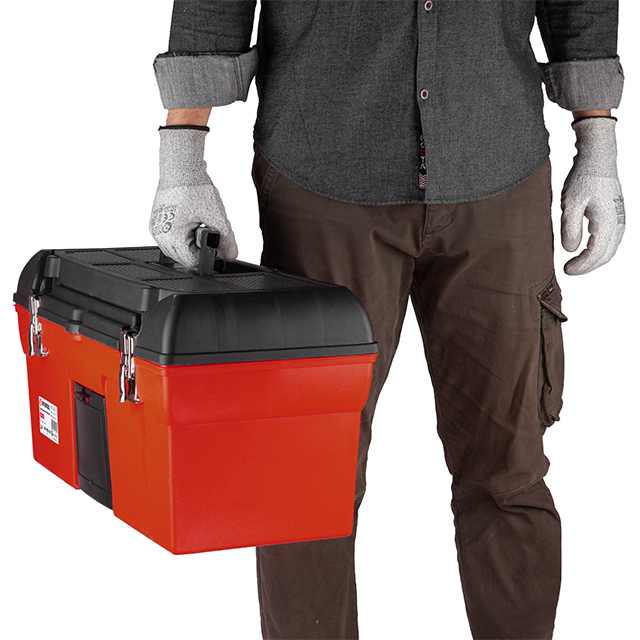 Виготовлені ящики з якісного пластику, стійкого до механічних пошкоджень. Конструкція добре справляється з навантаженнями, тримає форму та не деформується при транспортуванні важких інструментів.