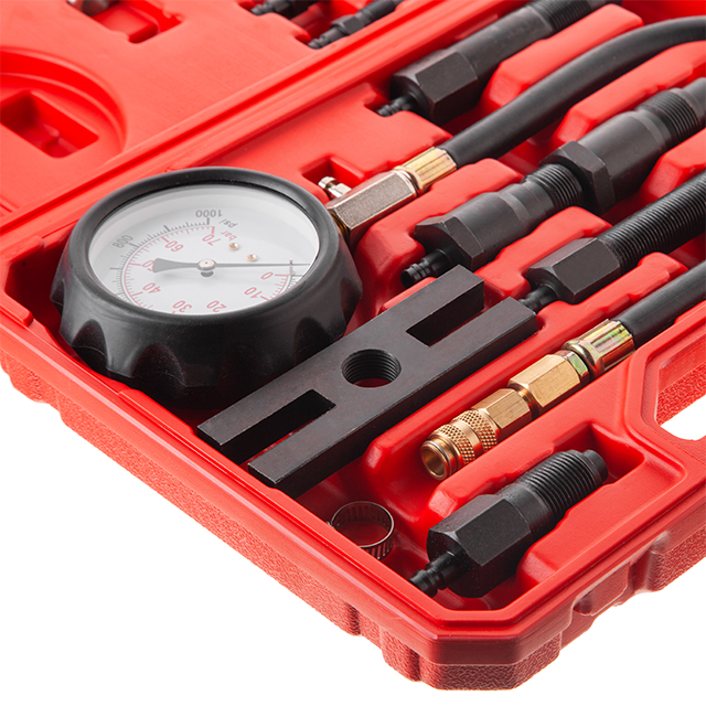 Великий манометр з показниками, легко зчитується для комфортної роботи, має дві найбільш популярні шкали вимірювання: 0-70 Bar і 0-1000 PSI. Інструмент укомплектований в міцний пластиковий кейс із персональними посадковими місцями під кожен елемент. Два замки забезпечують повну безпеку комплекту, а наявність ручки - зручне транспортування.