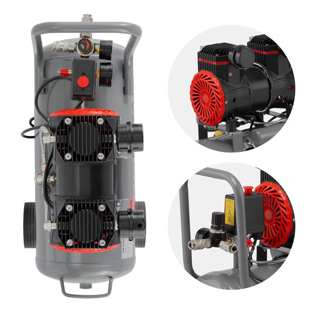 Відмінною рисою безмасляного компресора є робота без використання мастила поршневої системи, а також низький рівень шуму 68 дБ. Вам не потрібно щоразу контролювати рівень мастила, у результаті компресор дуже простий у обслуговуванні.