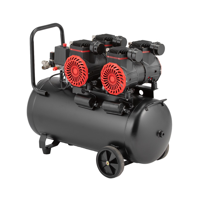 Компресор, 50 л, 2×1,5 кВт, 230 В, 8 атм, 500 л/хв, 2800 об/хв, безмасляний, 4 циліндри, 63 дБ