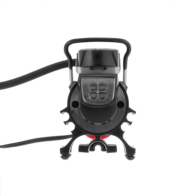 Компресор має дуже скромні габарити, тому разом із комплектом та сумкою поміститися навіть у найкомпактніших багажниках. Живлення здійснюється від прикурювача автомобіля 12 В, тому ви зможете легко накачати колесо в дорозі. Довжина мережевого дроту 3 метри. Вбудований LED-ліхтар допоможе зручно накачати колесо навіть у темну пору доби.
