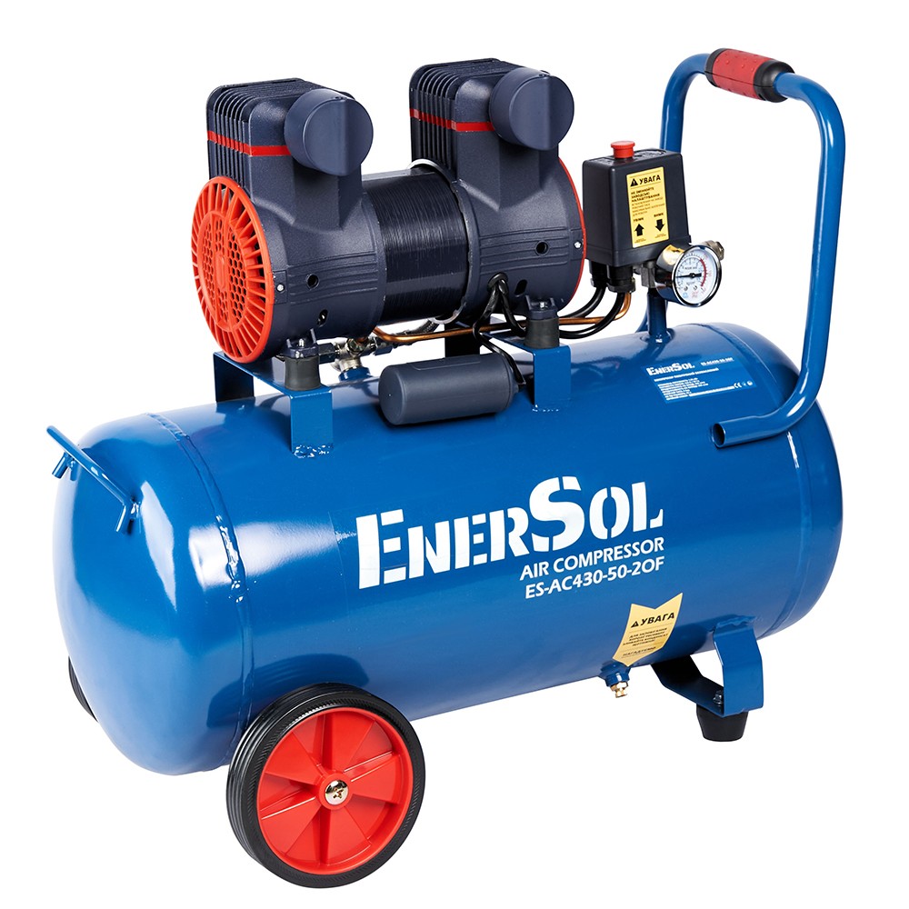Компресор повітряний EnerSol ES-AC430-50-2OF безолійний 1.68кВт, 50л, 430л/хв, 8бар, 23кг