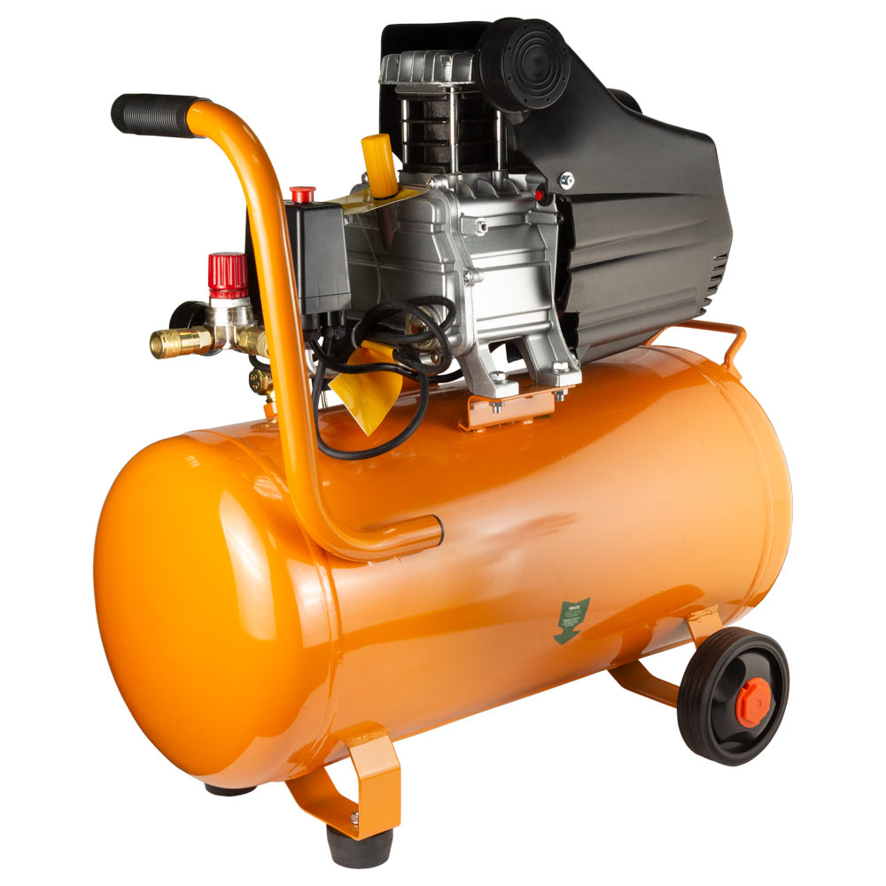 Сучасний пристрій нагнітання під тиском повітря. Редуктор допомагає виставити оптимальний тиск для ефективної роботи пневмоінструменту. Запобіжний клапан спрацьовує у разі підвищення граничного тиску, дозволяючи захистити деталі пневмосистеми від аварійних поломок. У нижній частині ресивера є спеціальна дренажна пробка, що дозволяє легко і швидко зливати конденсат. Конструкція передбачає колеса, завдяки яким компресор легко та зручно перевозиться робочим майданчиком.