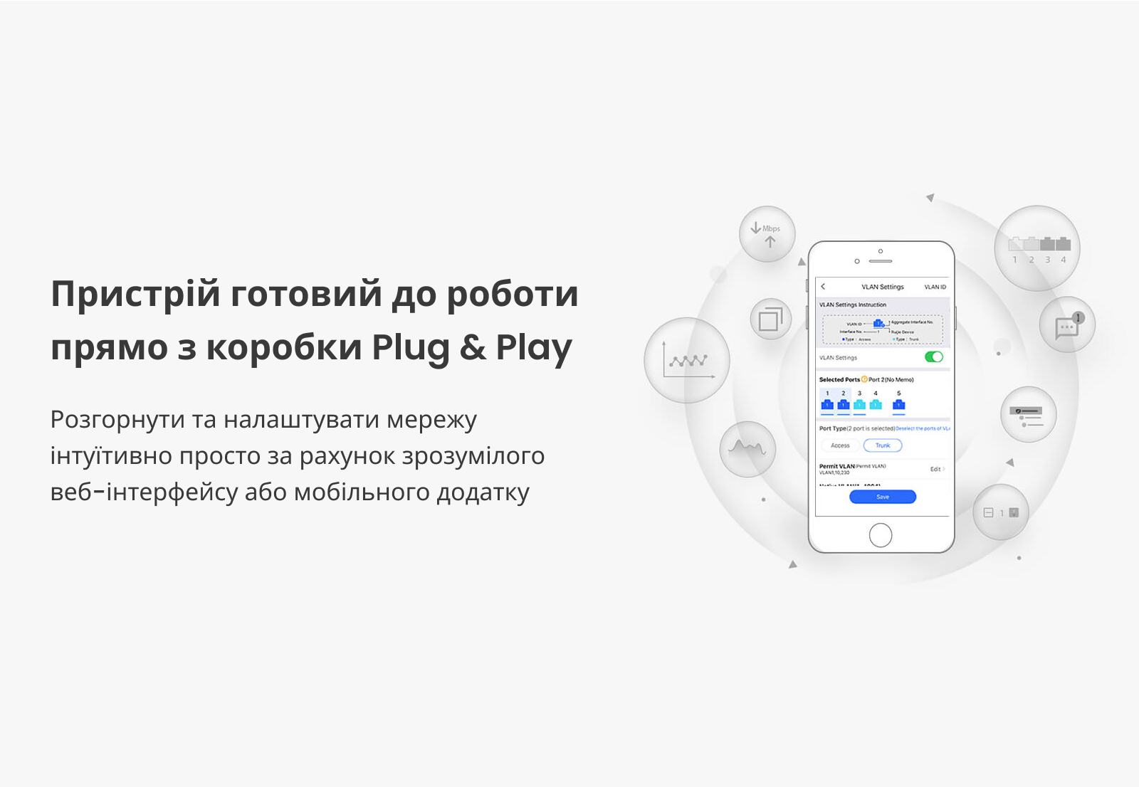 Керований інтелектуальний комутатор Ruijie Reyee RG-ES208GC Правильне рішення для систем відеонагляду! Ruijie Reyee RG-ES208GC – це 8-ти портовий гігабітний керований комутатор, розроблений для злагодженої роботи систем відеонагляду. Обирай інтелектуальні комутатори для відеоспостереження CCTV Ruijie Reyee серії RG-ES200 Вони створені для побудови надійних безпечних мереж у офісних приміщеннях, будинках, квартирах, складських та інших територіях. • Висока продуктивність та швидкість дротової передачі даних за рахунок портів 1Гб/с • Функції безпеки корпоративного рівня • Захист від «петель» • Живлення по РoЕ на відстані 250+м • Підтримує віддалене перезавантаження порта по PoE • Автоматично розпізнає інші пристрої Reyee, а також камери та відеореєстратори і самостійно створює топологію мережі • Функції пріоритезації трафіку, Flow Control та інші Пристрій готовий до роботи прямо з коробки Plug & Play Розгорнути та налаштувати мережу інтуїтивно просто за рахунок зрозумілого веб-інтерфейсу або мобільного додатку. «Самоорганізована мережа» Автовизначення IP-камер та реєстраторів та пристроїв Reyee у мережі та додавання їх до топології мережі. Підключіть дроти передачі даних та живлення, і обладнання автоматично побудує топологію мережі. Віддалене перезавантаження окремого порта Перезапуск одного порта — це значно краще, ніж перезапуск усіх портів. А віддалений перезапуск одного порта — навіть краще, ніж перезапуск одного порта на місці. Одночасна гібридна схема керування пристроями • Власний веб-інтерфейс пристрою • Хмара Ruijie Cloud • Мобільний додаток Ruijie Cloud. Усі 3 режими керування доступні одночасно. Ви обираєте самі той, який вам більше до вподоби. Можливості інтерфейсу керування: • Вищий рівень безпеки вашої мережі: сповіщення про проблеми у мережі у реальному часі на ваш мобільний телефон! • Оптимізація налаштувань мережі в один клік • Віддалене перезавантаження камери/порта • Спільне використання проекту для керування/моніторингу мережі одночасно декількома працівниками • Віддалене керування та налаштування мережі, щоб скоротити час та витрати на виїзди до об'єкта Підбирайте обладнання через каталог пристроїв у мобільному додатку Ruijie Cloud. Обирайте сценарій і отримуйте готове рішення для офісу, готелю, складського приміщення тощо. Про компанію Ruijie Networks Ruijie Networks – це всесвітньовідома інноваційна компанія, яка спеціалізується на розробці інтелектуальних мережевих рішень. Під брендом Ruijie представлені промислові комутатори, продуктивні точки доступу, домашні роутери з підтримкою меш і хмарним керуванням. Обладнання має широкий функціонал, хорошу продуктивність апаратної частини та забезпечує гнучкість для масштабування мережі. Рішення Ruijie наразі забезпечують стабільну роботу китайських аеропортів, європейських готельних комплексів, фабрик, заводів, навчальних закладів та офісних приміщень Для лінійки рішень для невеликого бізнесу та дому було створено саббренд Ruijie Reyee.