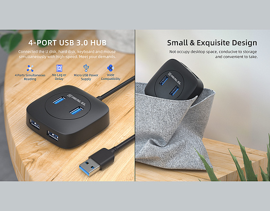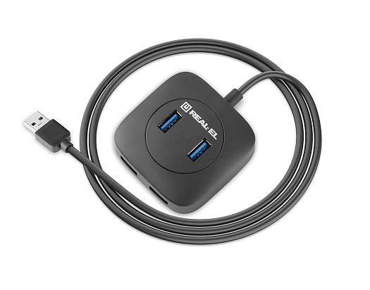 REAL-EL HQ-187 USB 3.0 HUB призначений для розширення та множення портів USB з можливістю використання всіх із них одночасно. Може використовуватися з усіма типами док-пристроїв, які можна підключити через порт USB-A.