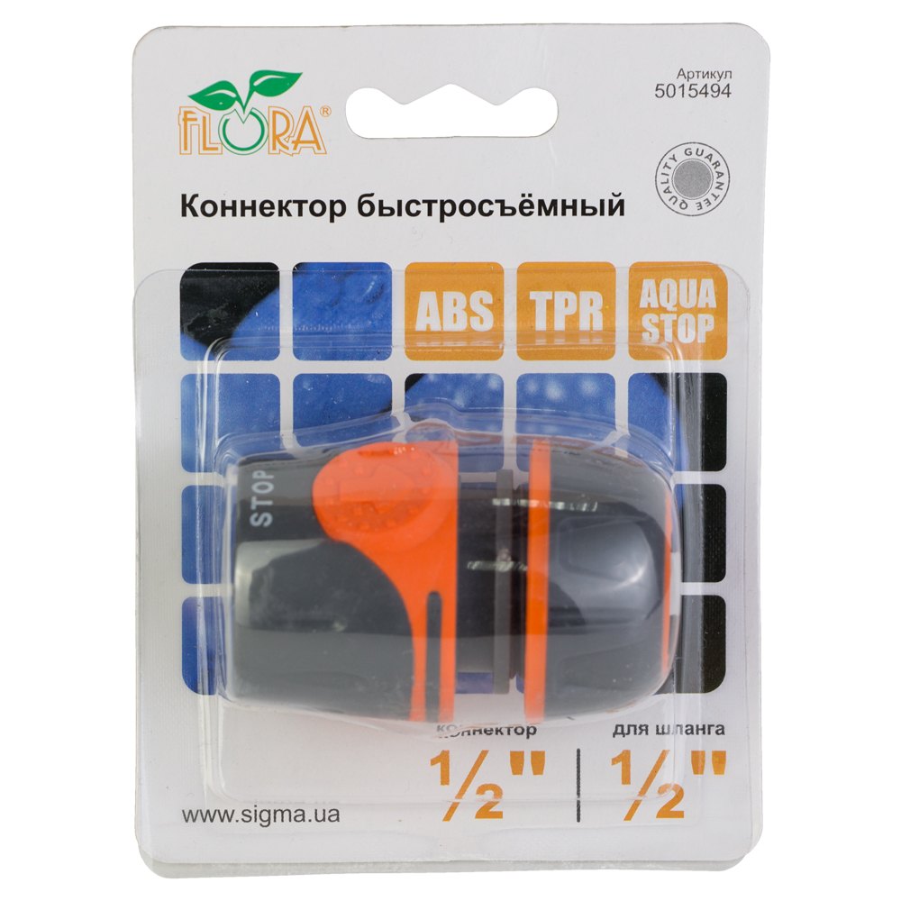 Конектор 1/2" швидкознімний для шланга 1/2" аквастоп (ABS+TPR) FLORA (5015494)