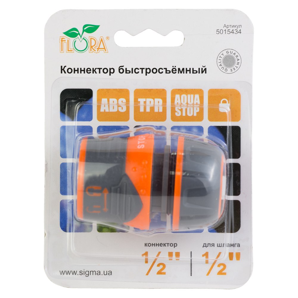 Конектор 1/2" швидкознімний для шланга 1/2" аквастоп із замком (ABS+TPR) FLORA (5015434)