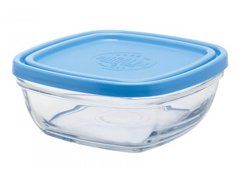 Контейнер для зберігання Duralex Carre, квадратний, 14см, 610мл, скло, пластик, прозорий, синій
