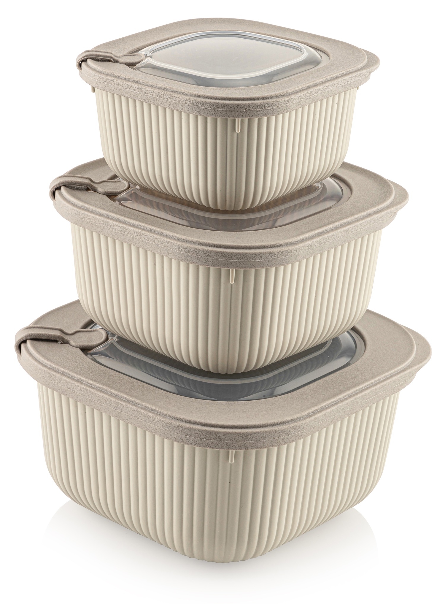 Набір контейнерів з кришкою IDEA HOME 00685 Line Box Bej 3 шт. Об єм: 0.6/1.1/1.8 л. Матеріал: пластик. Колір: бежевий. Форма: квадратна. Особливості: багаторазовий