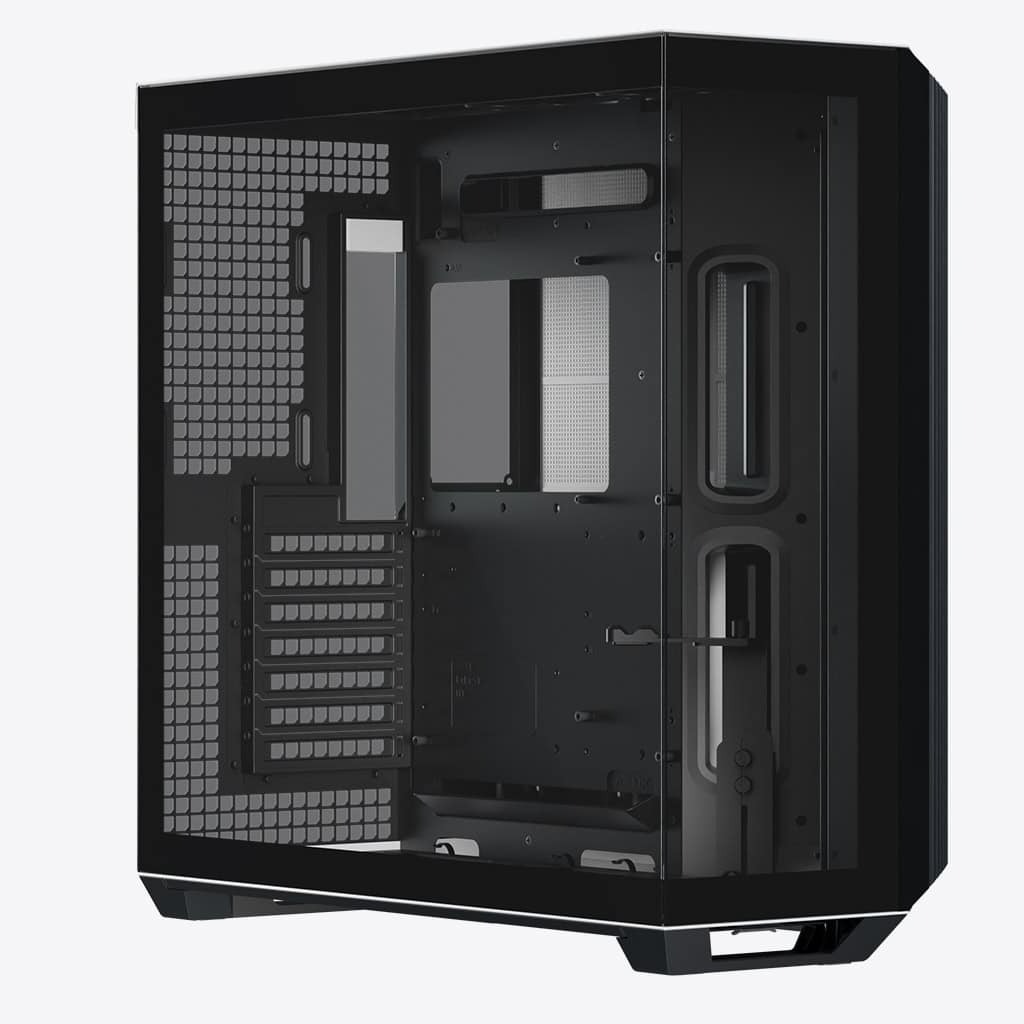 Інноваційна конструкція двокамерного панорамного корпусу з кутовим всмоктуванням повітря під кутом 45° покращує загальний потік повітря та теплову ефективність як для графічного, так і для центрального процесора, зберігаючи при цьому фірмовий вигляд із повністю загартованого скла. Кутова впускна панель підтримує три 12-сантиметрові, два 14-сантиметрові та до двох 16-сантиметрових вентилятори.