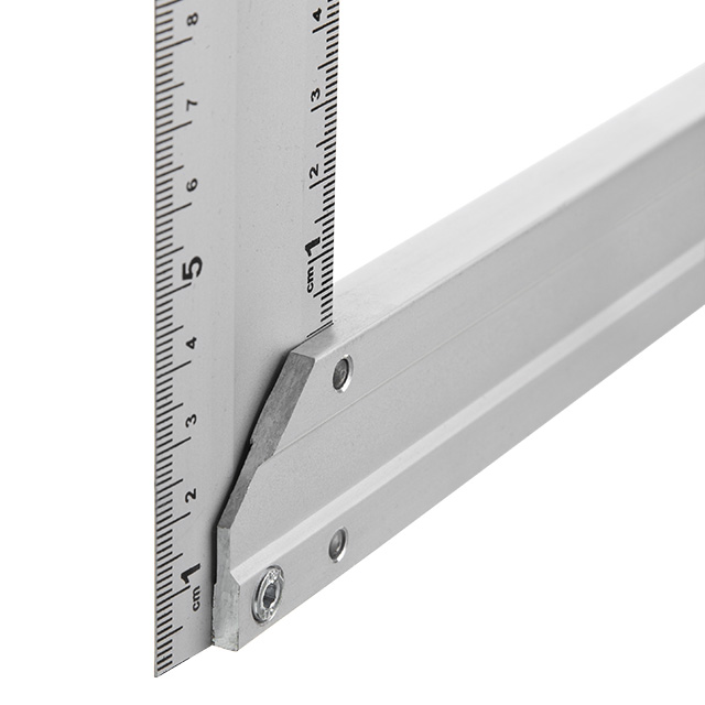 Двостороння метрична та дюймова розмітка з чітким маркуванням для зручної та точної роботи. Інструмент із прямим кутом 90° дозволяє точно вимірювати вертикальне відхилення внутрішніх та зовнішніх кутів, що забезпечує коректні дані вимірювань.