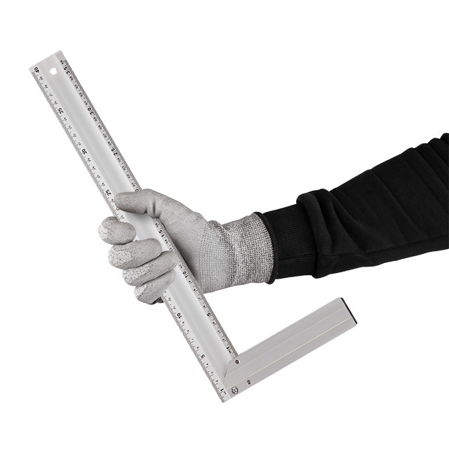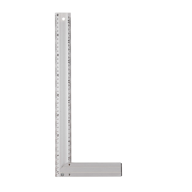 Двостороння метрична та дюймова розмітка з чітким маркуванням для зручної та точної роботи. Інструмент із прямим кутом 90° дозволяє точно вимірювати вертикальне відхилення внутрішніх та зовнішніх кутів, що забезпечує коректні дані вимірювань.