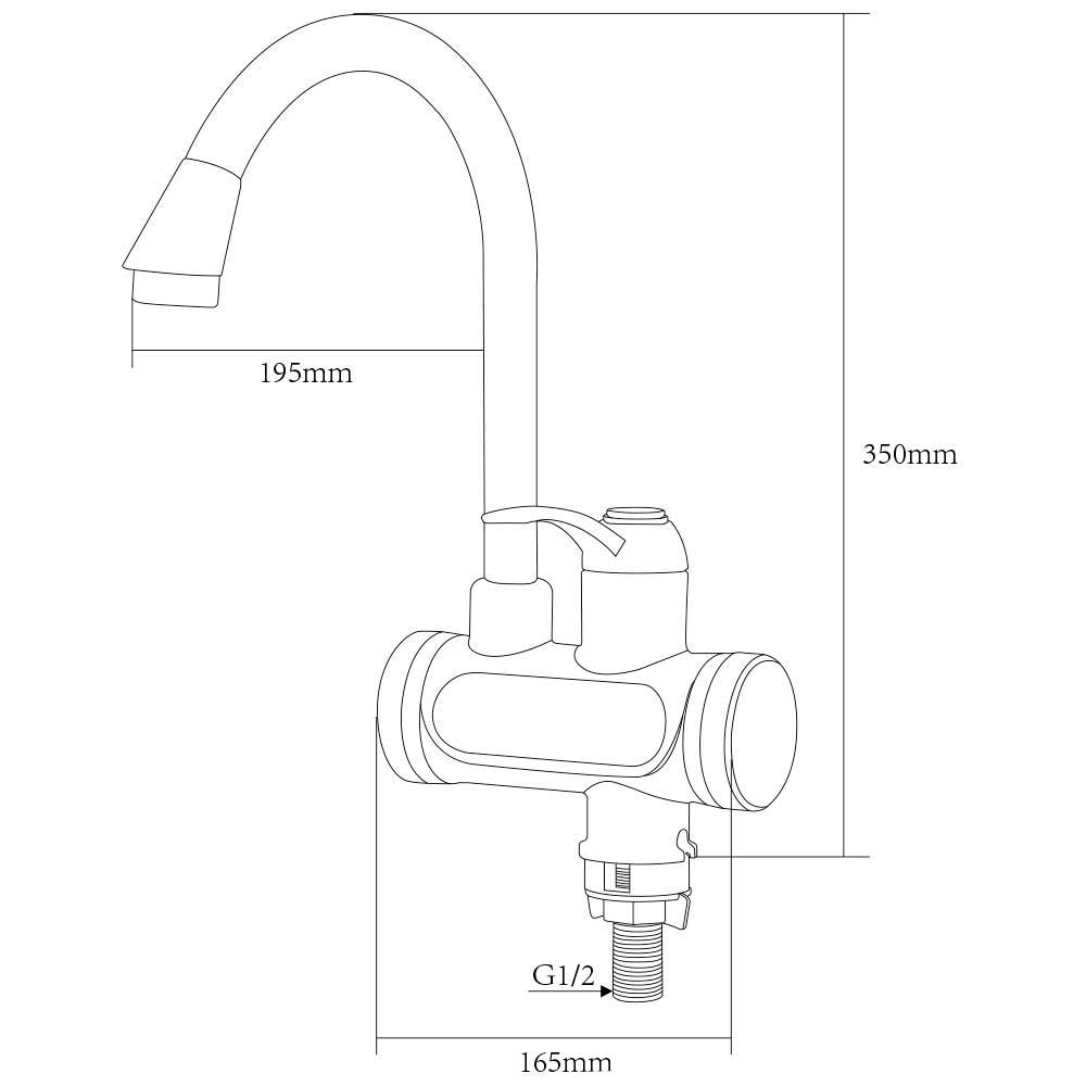 Даний проточник складається з термостійкого корпусу з цифровим дисплеєм та нагрівальними елементами. Регулювати температуру та натиск струменя допомагає ручка важільного типу. Гус J-подібної форми, поворотний, аератор вбудований.