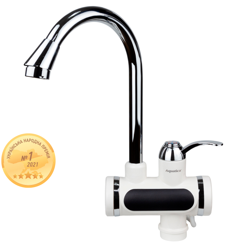 Кран-водонагрівач проточний JZ 3.0 кВт 0,4-5бар для кухні гусак вухо на гайці AQUATICA (JZ-6B141W)