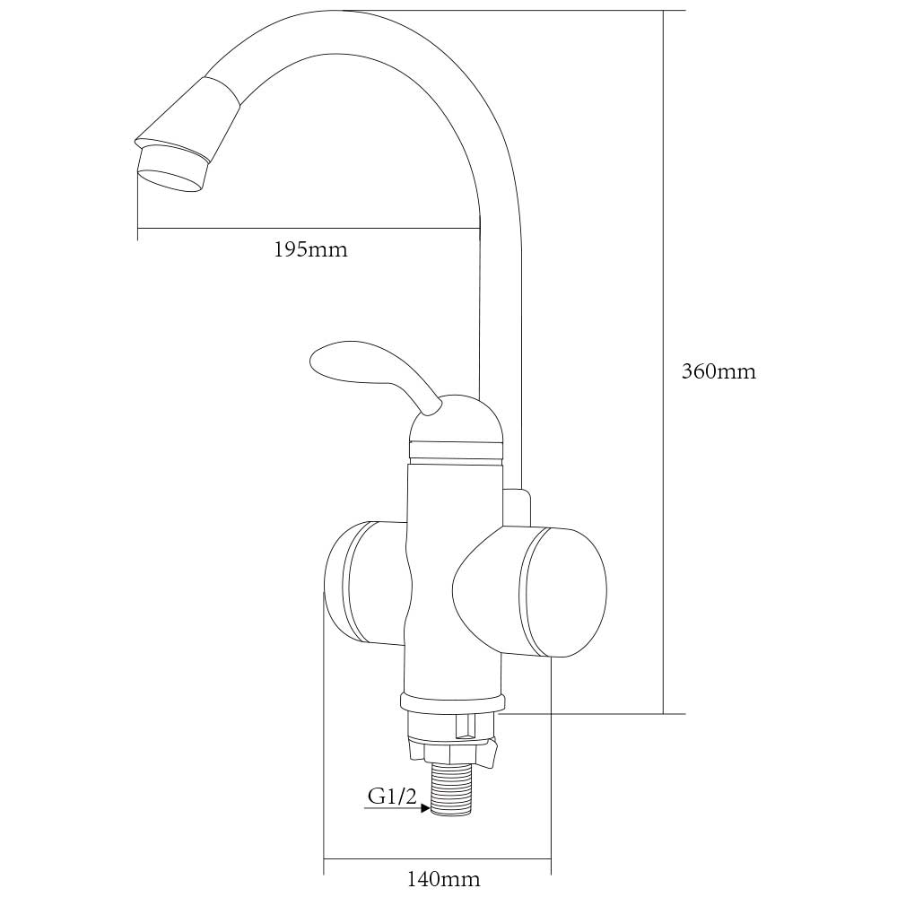 Кран-водонагрівач проточний LZ 3.0кВт 0.4-5бар для кухні гусак вухо на гайці AQUATICA (LZ-6B111W)